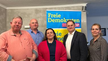 19.04.2023 Ortsparteitag 2023 Sehr gut besuchter Ortsparteitag der FDP NaWi in Wiblingwerde v.l.n.r.: A. Speckmann, C. Vogel, M. Christodoulakis, A.H. Stopsack, P. Tessmer-Höfelmann Mehr dazu